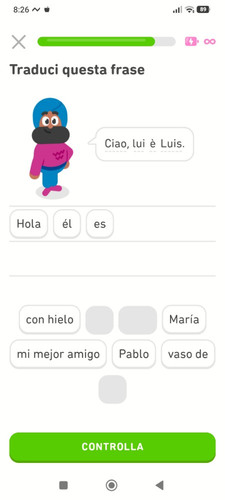 Прелестное от совы. Из плашечек надо собрать предложение (если что, то у меня в качестве известного языка стоит итальянский, а учу испанский).