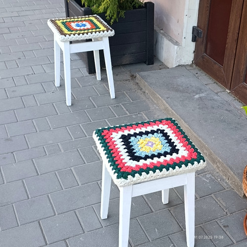 А у входа табуреточки с бабушкиными квадратами.