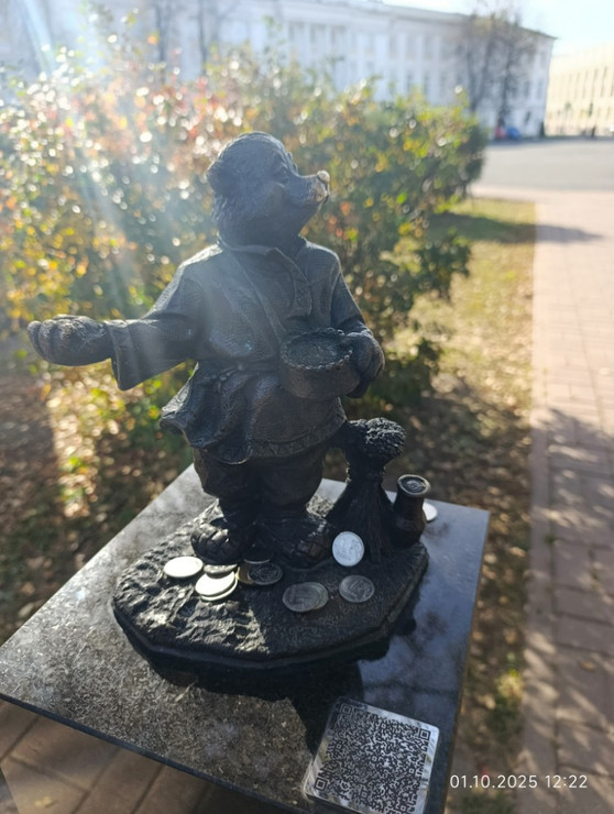 После прогулки решили идти к набережной. Всё равно больше некуда. А там медвежата были. Люцик оценил.