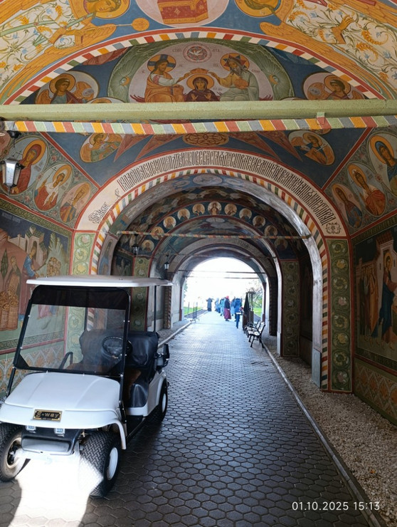 О степени богатства монастыря можно судить по электрокарам в количестве совсем не одной штуки, рассекающей про его крошечной территории.