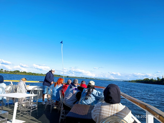 После Зоопарка и "кремля" спонтанно решили покататься на теплоходике. Совпало желание и возможность. Время в пути полтора часа, цена 700 р с носа, отправление через 15 минут - идеально. Так что, купив билеты в кассе у маленького причала, бодрым шагом прошли до порта, где погрузились в "Мечту".