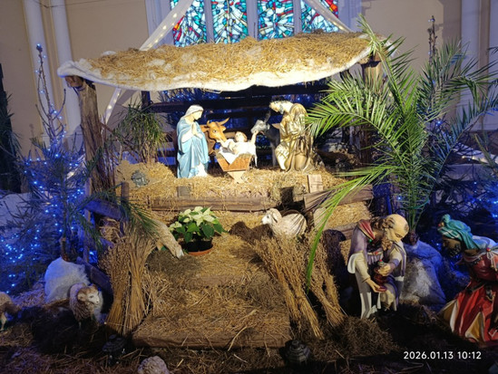 Если в православном ёлки и прочие атрибуты Рождества ещё стоят во всём богатстве, то в католическом как раз при нас снимали шарики со всех ёлочек. Вертеп ещё стоял, я его сфотографировала.