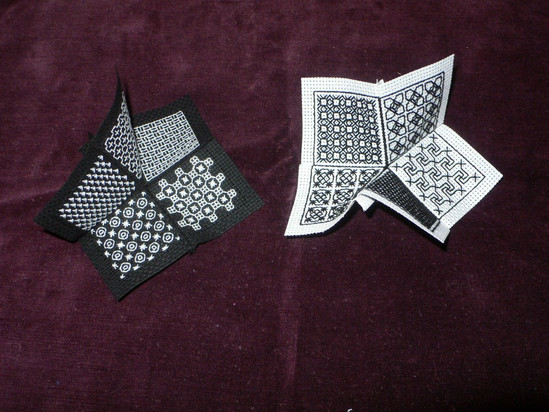 Я узоры из книги по блэкворку брала. Мне кажется, у сашико меньше чёткой геометрии, хотя стили похожи.